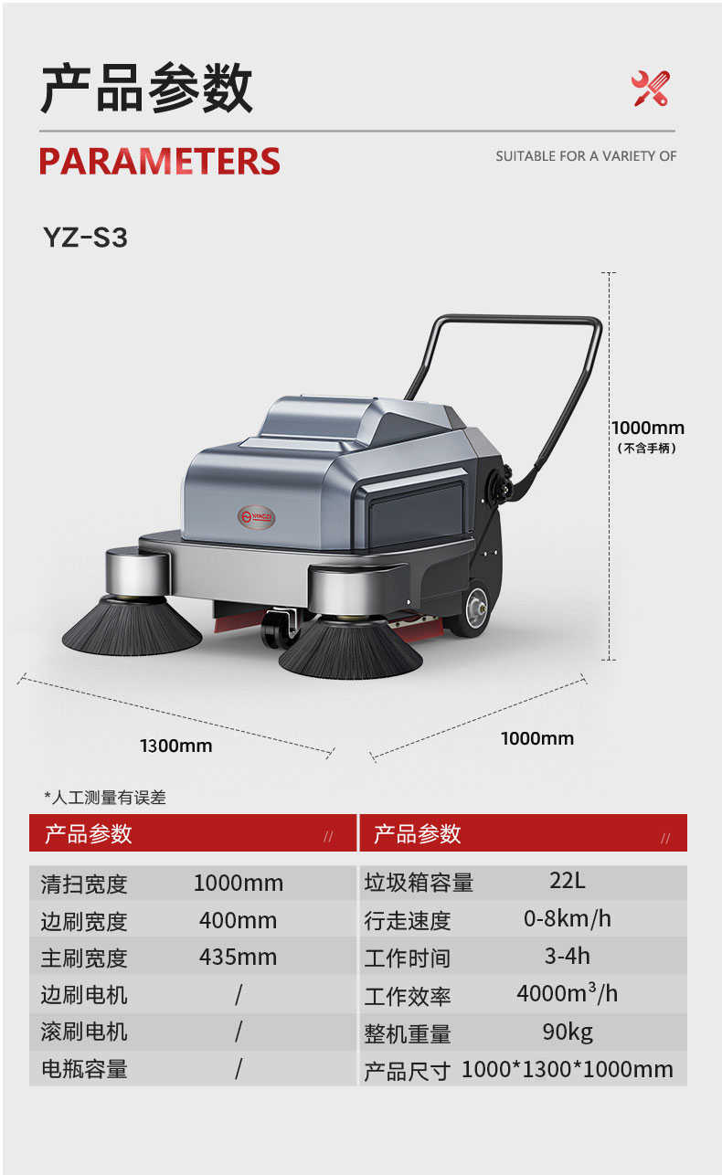 扬子YZ-S3手推式扫地机,清扫车,厂家直销,省30%成本,工作时间:3-4h,重量:90kg,效率:4000m2/h,大于10人工作效率,干净不留痕,免费试机,买贵包退.专业的售后团队,免费上门指导操作和维护.扬子YZ-S3喷雾款,想进一步了解,请咨询在线客服或官方免费热线,客服详细解答产品参数和最新活动价格